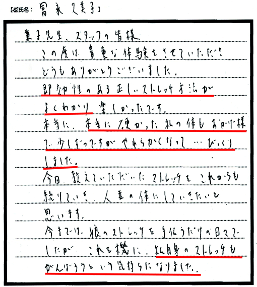 私自身のストレッチも頑張ろうという気持ちになりました。